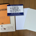 水で溶く場合や、あらかじめ紙を濡らして使う場合にはよれたり波打ったりしないので厚めの水彩紙を選ぶとよいです。